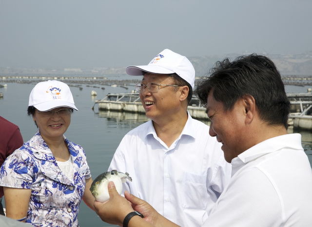 9月14日,國家食藥總局滕佳材副局長等領(lǐng)導(dǎo)視察參觀完天正河鲀大李家海上養(yǎng)殖基地后,在大李家養(yǎng)殖場會議室聽取了天正集團董事長孟雪松的匯報,并作出重要指示。